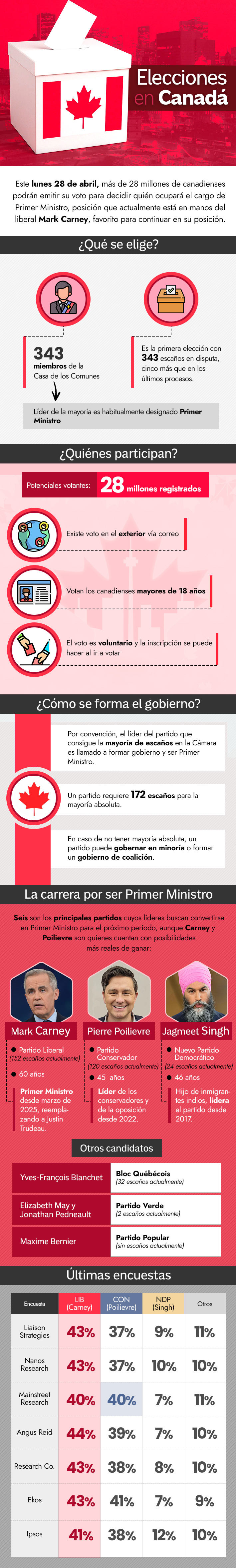 Liberales vs. conservadores: Cómo son las elecciones en Canadá y qué proyectan las encuestas