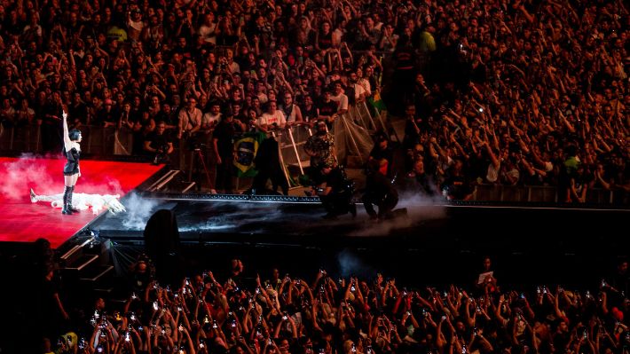 La diva del pop estadounidense, que no se había presentado en Brasil desde una gira en 2012, continuó con "Abracadabra", uno de los temas estrella de su último álbum, "Mayhem", lanzado en marzo.