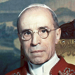 Eugenio Maria Giovani Pacelli, secretario de Estado y camarlengo de la Santa Romana Iglesia, elegido papa el día que cumplió 63 años, el 2 de marzo de 1939 a los dos días de cónclave y al tercer escrutinio, con 63 cardenales presentes. Nacido en Roma en 1876, murió en Castelgandolfo el 9 de octubre de 1958. Su pontificado tuvo una duración de diecinueve años.