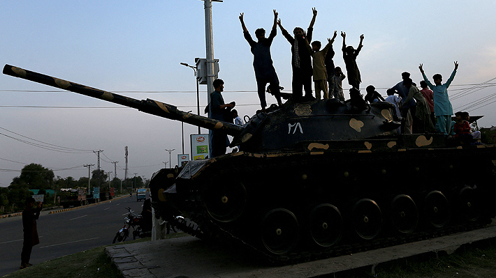 Paquistaníes celebran el cesa al fuego entre su país e India.