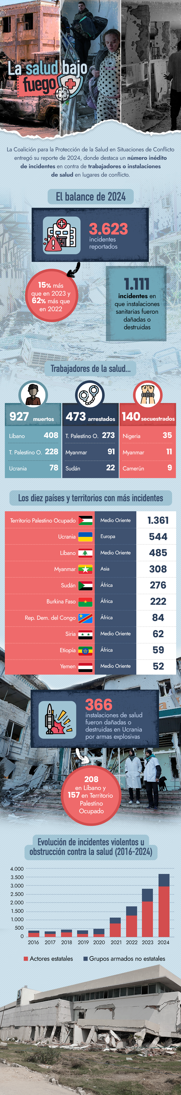Reportan cifra récord de incidentes violentos contra personal e instalaciones de salud en zonas de conflicto