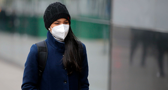Mujer camina con mascarilla durante la pandemia. | Ruben García Blanco, El Mercurio