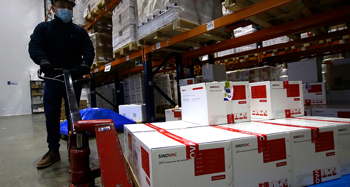 Chile recibe cargamento de vacunas Sinovac en 2021. | ATON