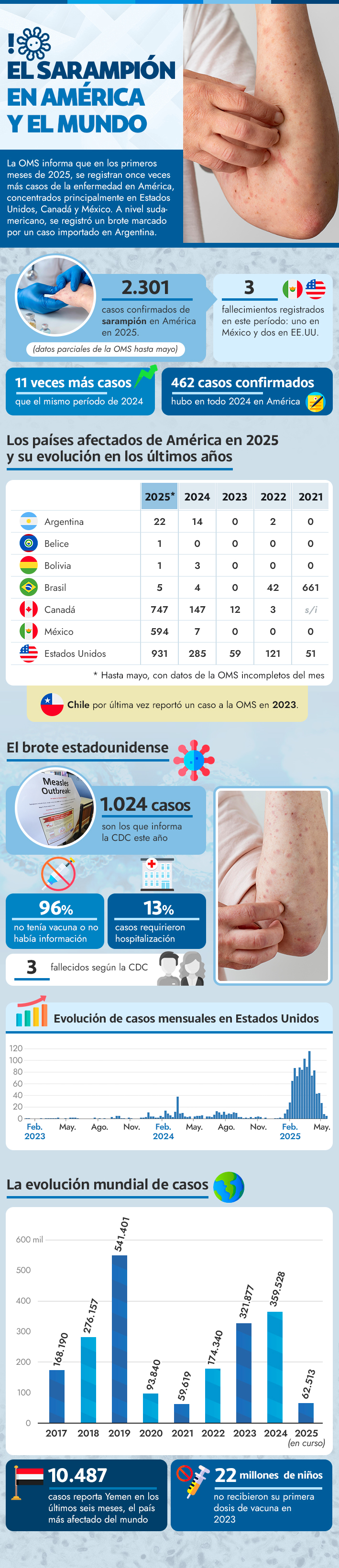 Ante refuerzo de campaña de vacunación contra el sarampión: ¿Cómo han evolucionado los casos en América y el mundo?