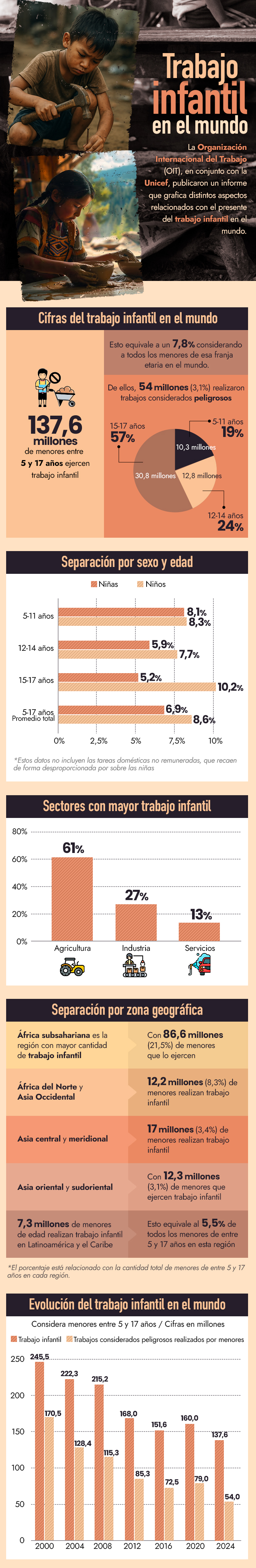 Informe "Trabajo infantil: Estimaciones mundiales 2024, tendencias y el camino a seguir" de OIT y Unicef.