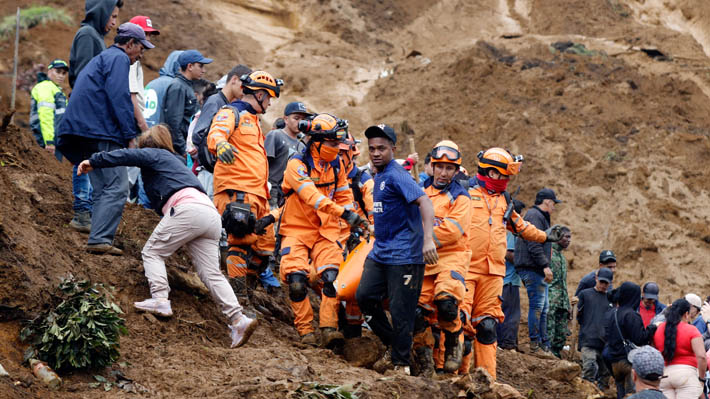 Imágenes de un reportero de la AFP muestran los trabajos de rescate entre la tierra caída de una montaña, donde están cubiertas varias casas.