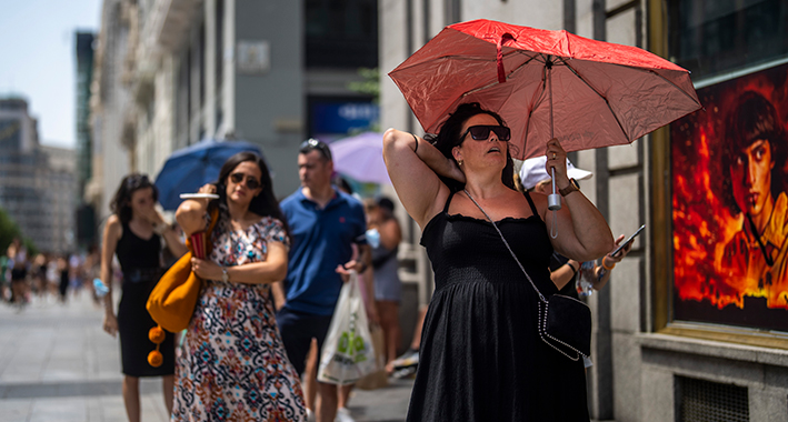 En España, la Agencia de Meteorología (Aemet) alertó la primera ola de calor, que parte este sábado, y que de momento abarcará hasta mediados de la próxima semana.