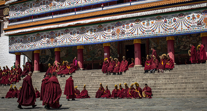 Monjes tibetanos se reúnen en el monasterio de Labrang en Xiahe. | EFE