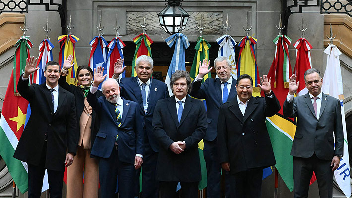 Milei llegó a la cita a las 09:20 (08:20 en Chile), fue recibido por el canciller Gerardo Werthein y con él subió las escaleras hacia el primer piso del palacio. Al rato llegó la secretaria general de la Presidencia, Karina Milei, tomada por las cámaras oficiales, antes de la bienvenida a los presidentes y ministros participantes. Sobrio con Orsi y algo más distante con Arce, Milei prodigó un largo abrazo a Peña, antes de la llegada de Lula.