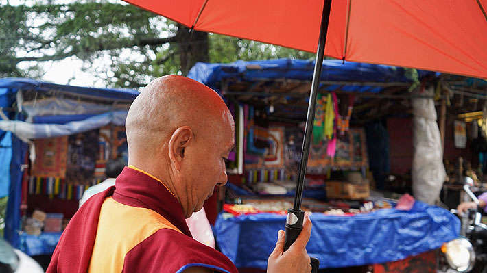 Pero la supervivencia también se libra en el día a día. Pese a las incesantes lluvias de monzón, el mercado de McLeod Ganj es un bullicio de paraguas de colores, y este vibrante comercio tiene un motor muy específico.