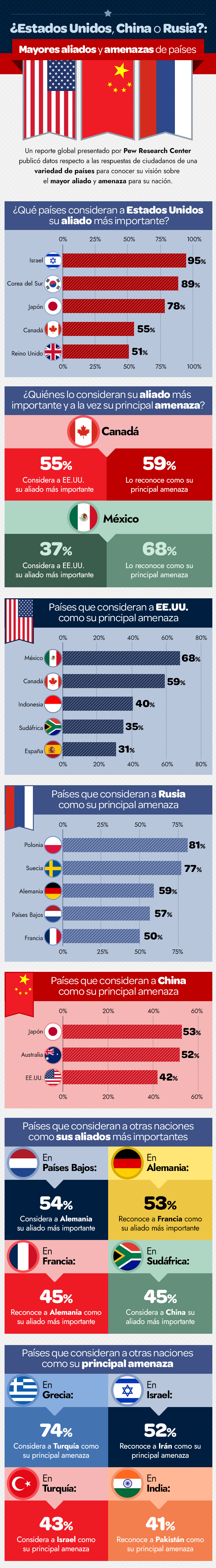 ¿China, Rusia o Estados Unidos?: Estos son los mayores aliados y amenazas considerados por distintos países
