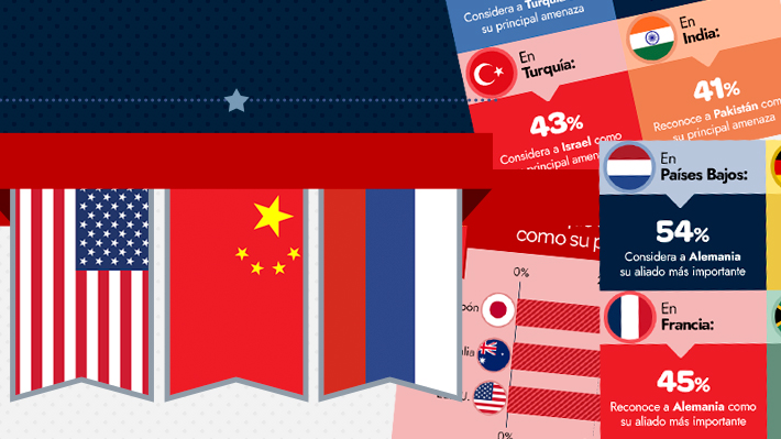 Un estudio de Pew Research Center realizado a casi 32.000 adultos de 25 naciones diferentes indagó sobre las percepciones de alianzas y peligros ante las grandes potencias del mundo.