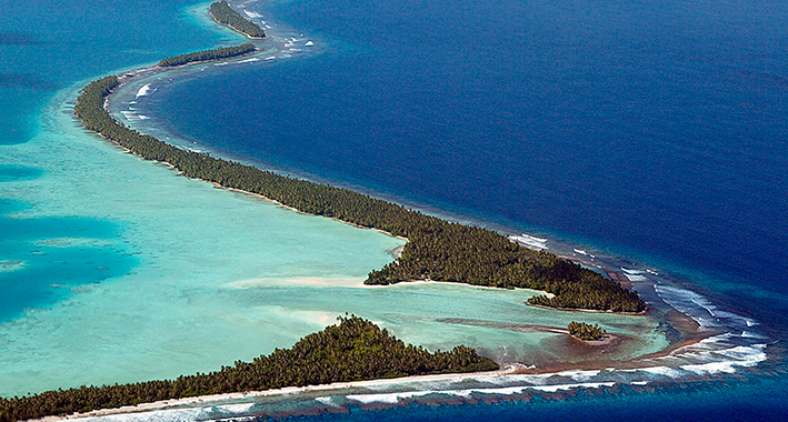 Panorámica de Tuvalu que demuestra como el aumento del nivel del mar está haciendo desaparecer a su territorio. | AFP