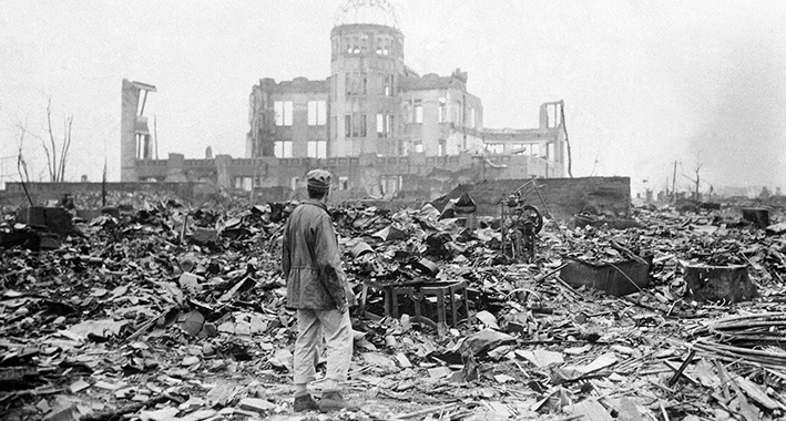 Superviviente al bombardeo atómico camina por los escombros de Hiroshima. | AP