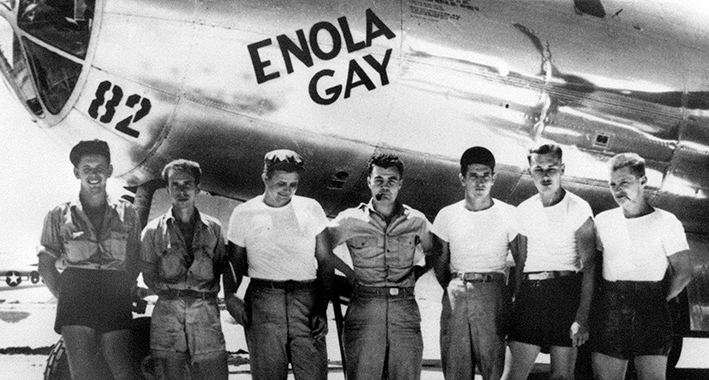 Militares posan junto al "Enola Gay", avión que dejó caer la bomba sobre Hiroshima. | AFP