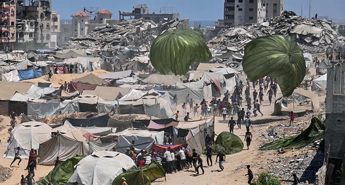 Habitantes de Ciudad de Gaza recibiendo ayuda humanitaria internacional. | AP