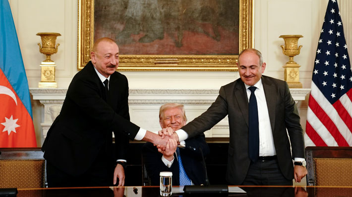 "Armenia y Azerbaiyán se comprometen a detener todos los combates para siempre, abrir el comercio, los viajes y las relaciones diplomáticas, y respetar la soberanía y la integridad territorial del otro", dijo Trump el viernes durante la firma del texto en la Casa Blanca.