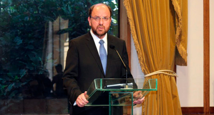 El exministro de Relaciones Exteriores, Alfredo Moreno Charme, anunciando el reconocimiento chileno de Palestina. | Gobierno de Chile