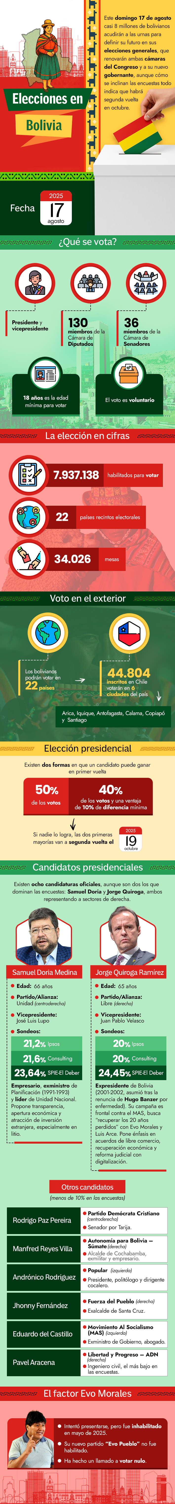 Más de 40 mil podrán votar desde Chile: Cómo son las elecciones en Bolivia y quiénes postulan a la presidencia
