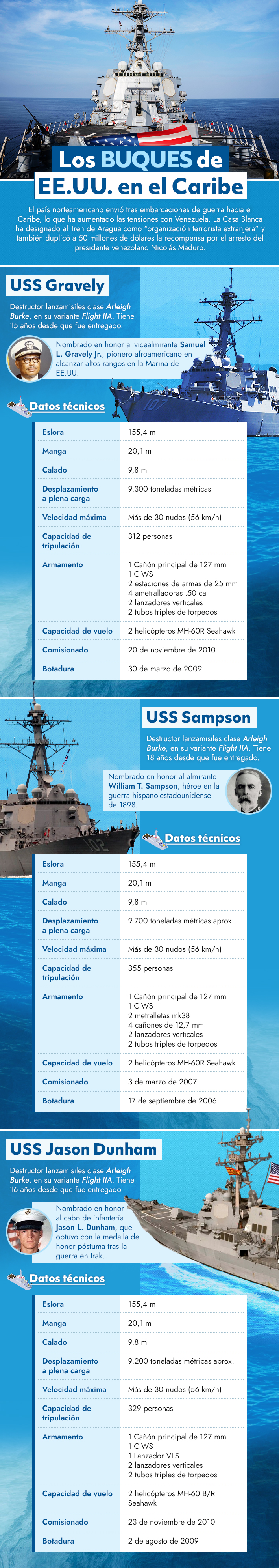 Cómo son las tres embarcaciones de guerra que EE.UU. habría desplegado en el Caribe ante tensión con Venezuela