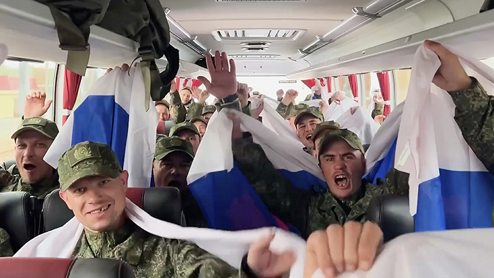Imagen capturada de un video distribuido por Rusia que muestra a algunos de los prisioneros intercambiados.