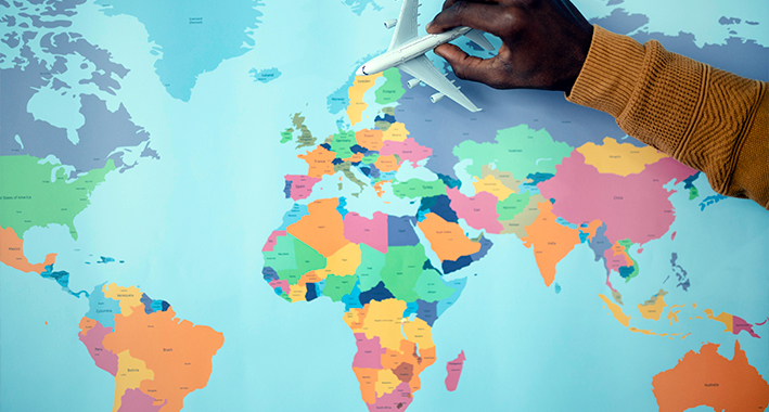 Fotografía referencial de estudiantes mirando un mapa con la proyección de Mercator. | Pexels