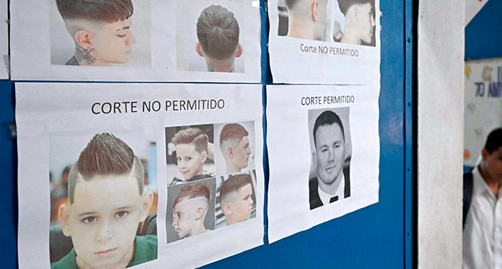 Escuela exhibe en su entrada los cortes de pelo admitidos y prohibidos. | AFP