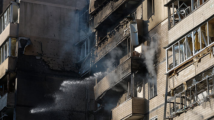 Según las autoridades de emergencia y locales de Kiev, el objetivo más afectado por el bombardeo ruso,