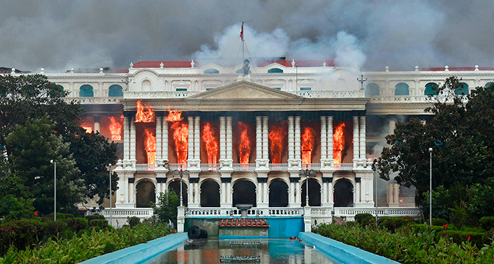 Cientos de manifestantes irrumpieron e incendiaron el Singha Durbar, Parlamento y sede de gobierno de Nepal, la Corte Suprema, y domicilios de distintas figuras políticas nepalíes.