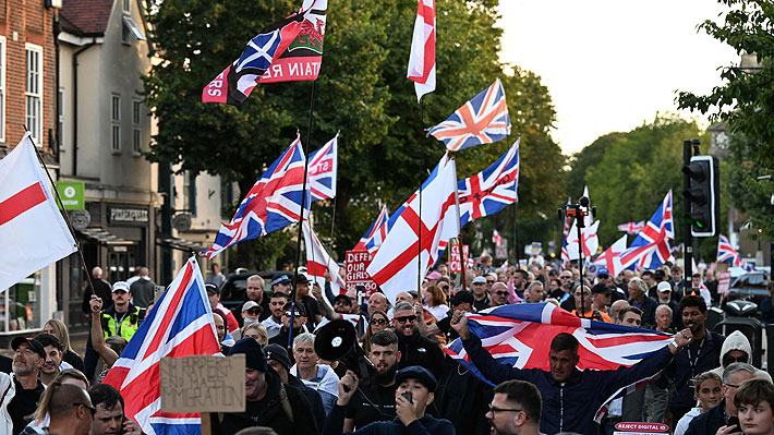 En las últimas semanas, las enseñas inglesa y británica se han multiplicado por el país, una demostración de patriotismo alimentada por la extrema derecha y vinculada a estas manifestaciones antiinmigración.