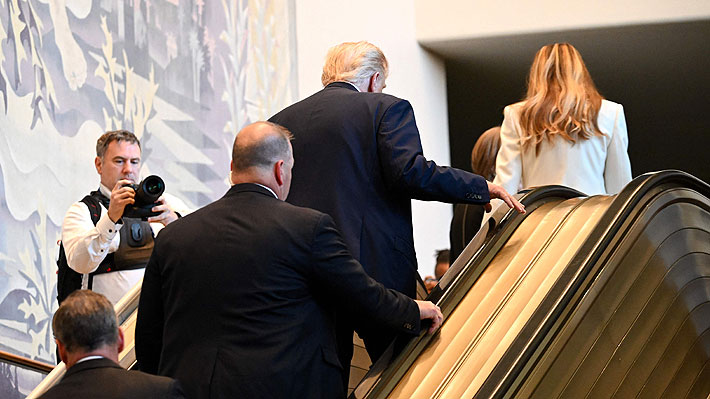 ¿Qué pasó? En su llegada a la sede de Naciones Unidas, Donald Trump se aprestaba a subir las escaleras mecánicas del recinto junto a su esposa Melania,