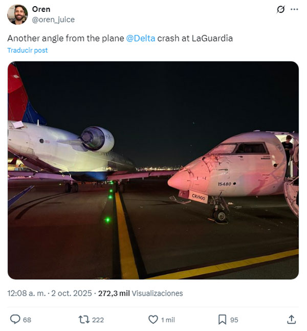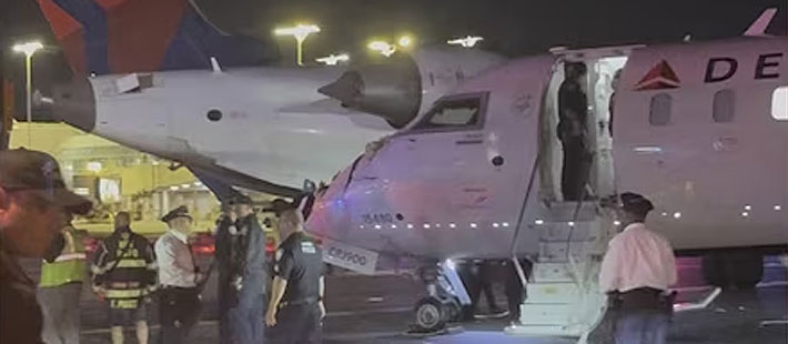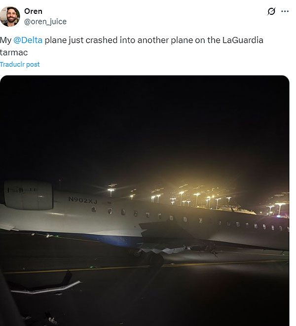 Dos aviones regionales de la aerolínea Delta colisionaron en la pista del Aeropuerto LaGuardia de Nueva York, hiriendo a una asistente de vuelo, dañando una cabina y arrancando parte de un ala en lo que la aerolínea describió como una "colisión a baja velocidad".