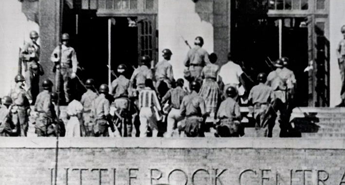 El Ejército resguarda el ingreso de menores afroamericanos a la escuela. | Smithsonian Institute