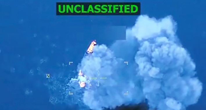 Captura de pantalla de un video que muestra un ataque del Ejército estadounidense a una embarcación en aguas del océano Atlántico. | EFE