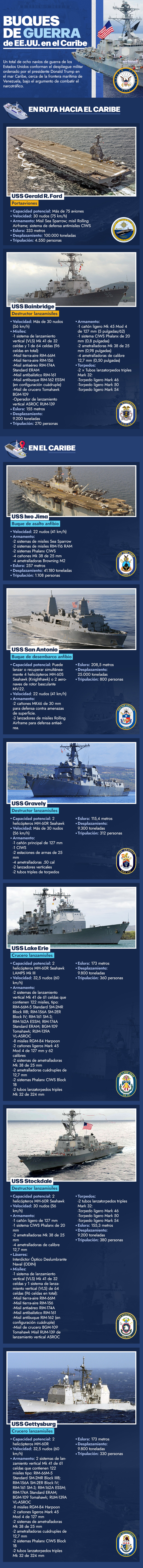 Aumenta la ofensiva militar estadounidense: Así son los ocho buques de guerra desplegados en el Caribe