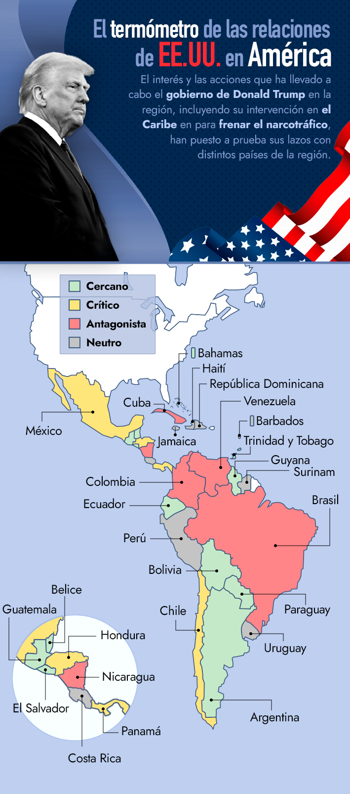 | Trinidad y Tobago | | Apoyo a ataques contra narco-barcos, aunque roces por aranceles. |