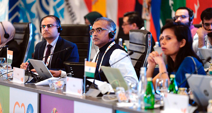 Representantes de delegaciones internacionales en la cumbre del G20 de Nueva Delhi en 2023. | Wikimedia