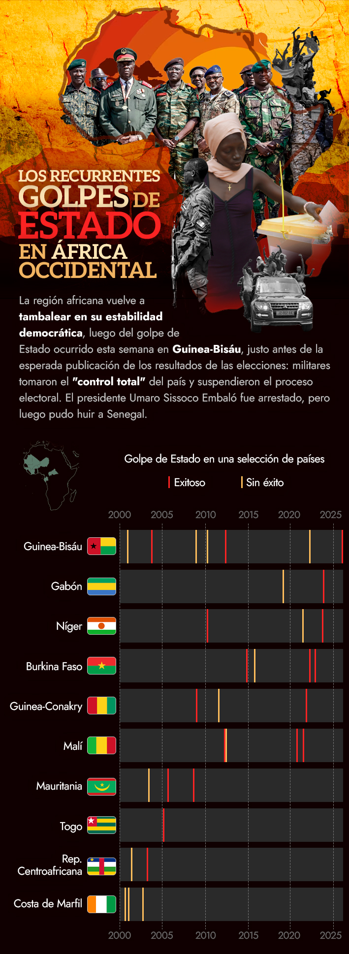 Guinea-Bisáu es el último caso: Los recurrentes golpes de Estado en África Occidental en los últimos 25 años