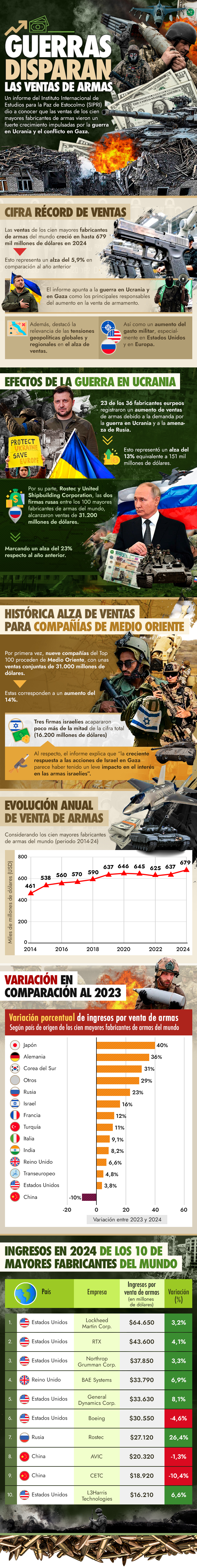 Guerras en Ucrania y Gaza disparan ventas de los principales fabricantes de armas en el mundo