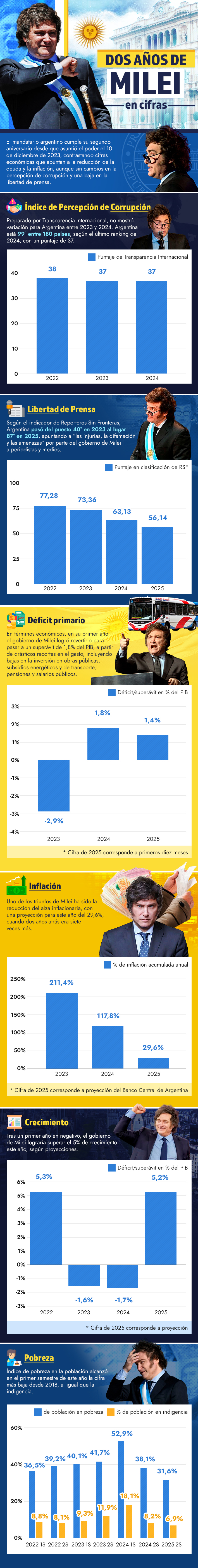 Los primeros dos años de Javier Milei en seis gráficos: Cómo ha sido su "primer tiempo" en Argentina