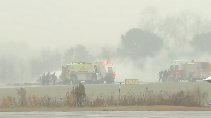 Imágenes difundidas desde el aeropuerto mostraron la aeronave envuelta en una gran bola de fuego tras el impacto.