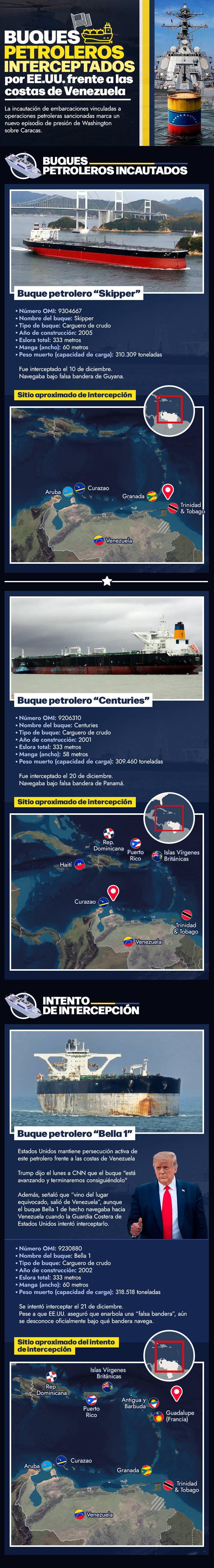 Buques petroleros incautados por EE.UU. frente a costas de Venezuela: Cómo son y dónde fueron interceptados