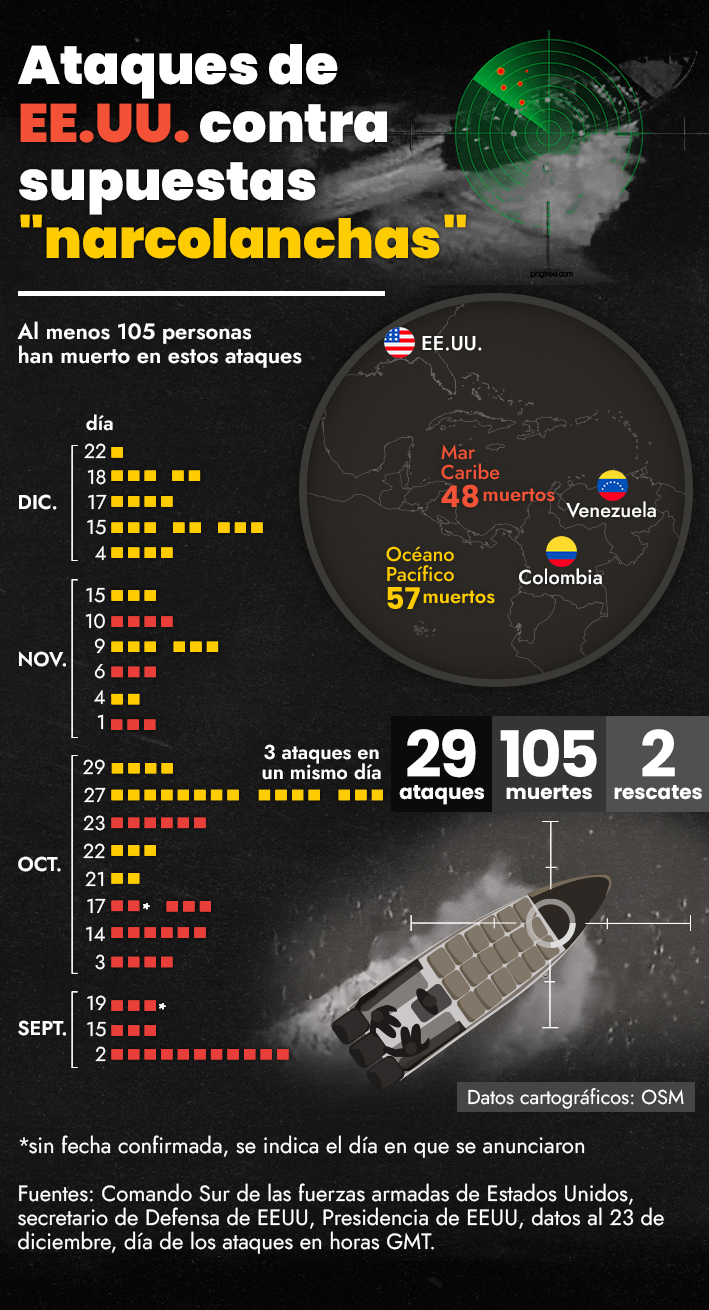 Comando Sur de las fuerzas armadas de Estados Unidos, secretario de Defensa de EEUU, Presidencia de EEUU, datos al 23 de diciembre, día de los ataques en horas GMT.