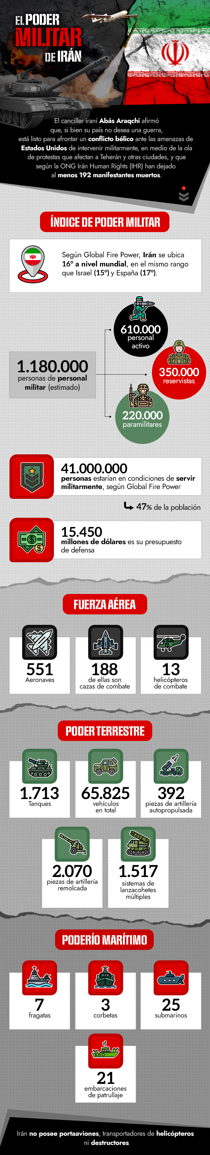 ¿Cuál es el poderío militar de Irán? Las cifras que lo ponen entre las 20 mayores fuerzas del mundo