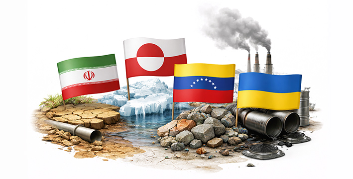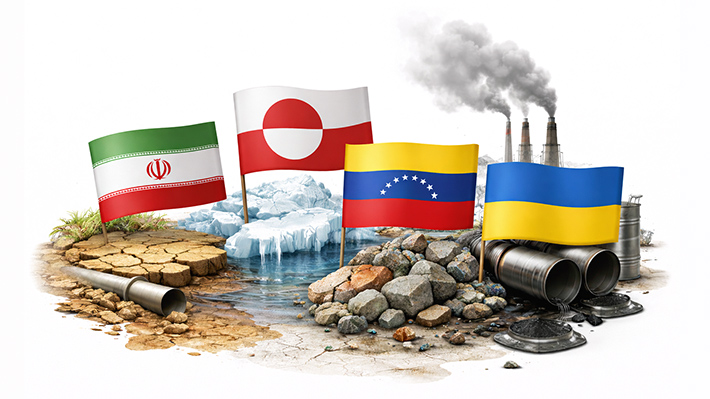 Este contexto se ve reforzado por crisis ambientales específicas que actúan como factores de inestabilidad. En Irán, la escasez hídrica acumulada durante seis años ha profundizado el malestar social en un país ya afectado por problemas económicos y energéticos. En Groenlandia, el deshielo y el potencial de sus recursos naturales han situado a la isla en el centro de intereses estratégicos internacionales, mientras que en el Caribe los acuerdos energéticos transfronterizos con Venezuela evidencian la dependencia regional de los recursos fósiles.