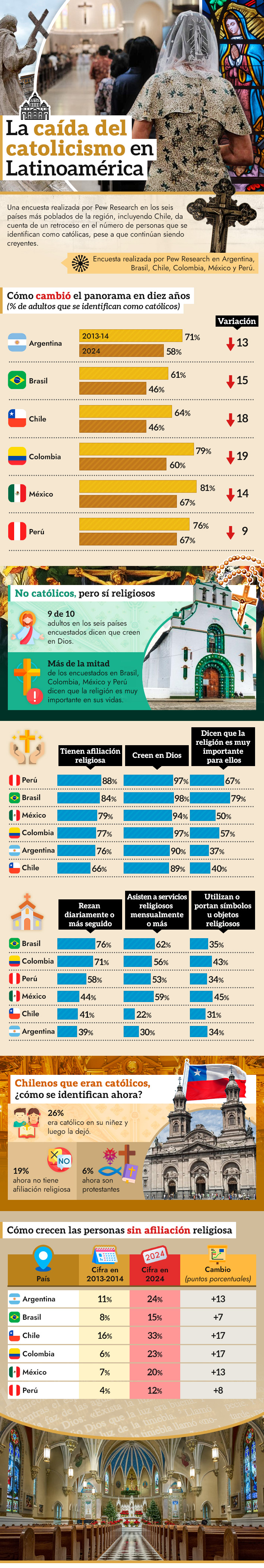 La caída del catolicismo en Latinoamérica: En Chile pasaron del 64% al 46% en diez años