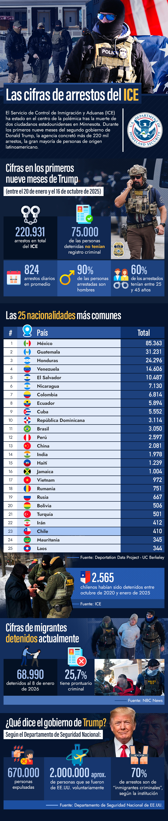 Diseño de Infografía: Michel Leiva M., Emol. | Edición: Felipe Vásquez N., Emol | Fuente: Deportation Data Project / ICE / Departamento de Seguridad Nacional de EE.UU. / NBC News