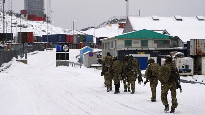 Soldados daneses desembarcan en el puerto de Nuuk, Groenlandia, en enero de este año.