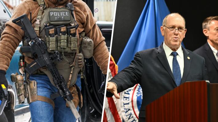 Un agente del ICE (izquierda) y Tom Homan, zar fronterizo de Trump (derecha).
