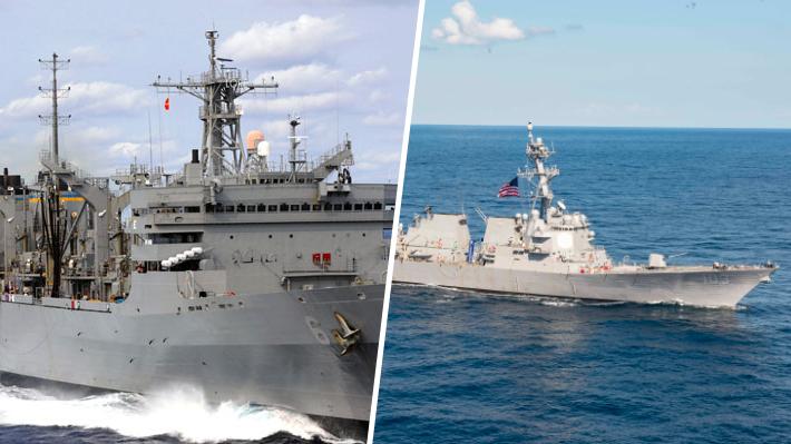 Los busques que se accidentaron fueron el buque de abastecimiento "USNS Supply" (izquierda) y el destructor "USS Truxtun" (derecha).